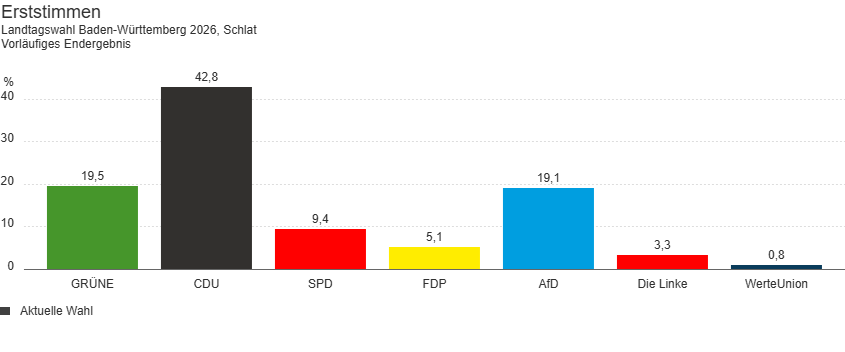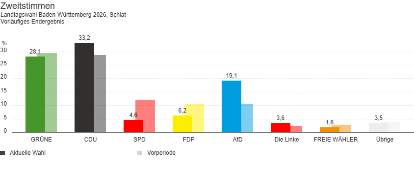 Landtagswahl 2026 - Vorläufiges Endergebnis in Schlat