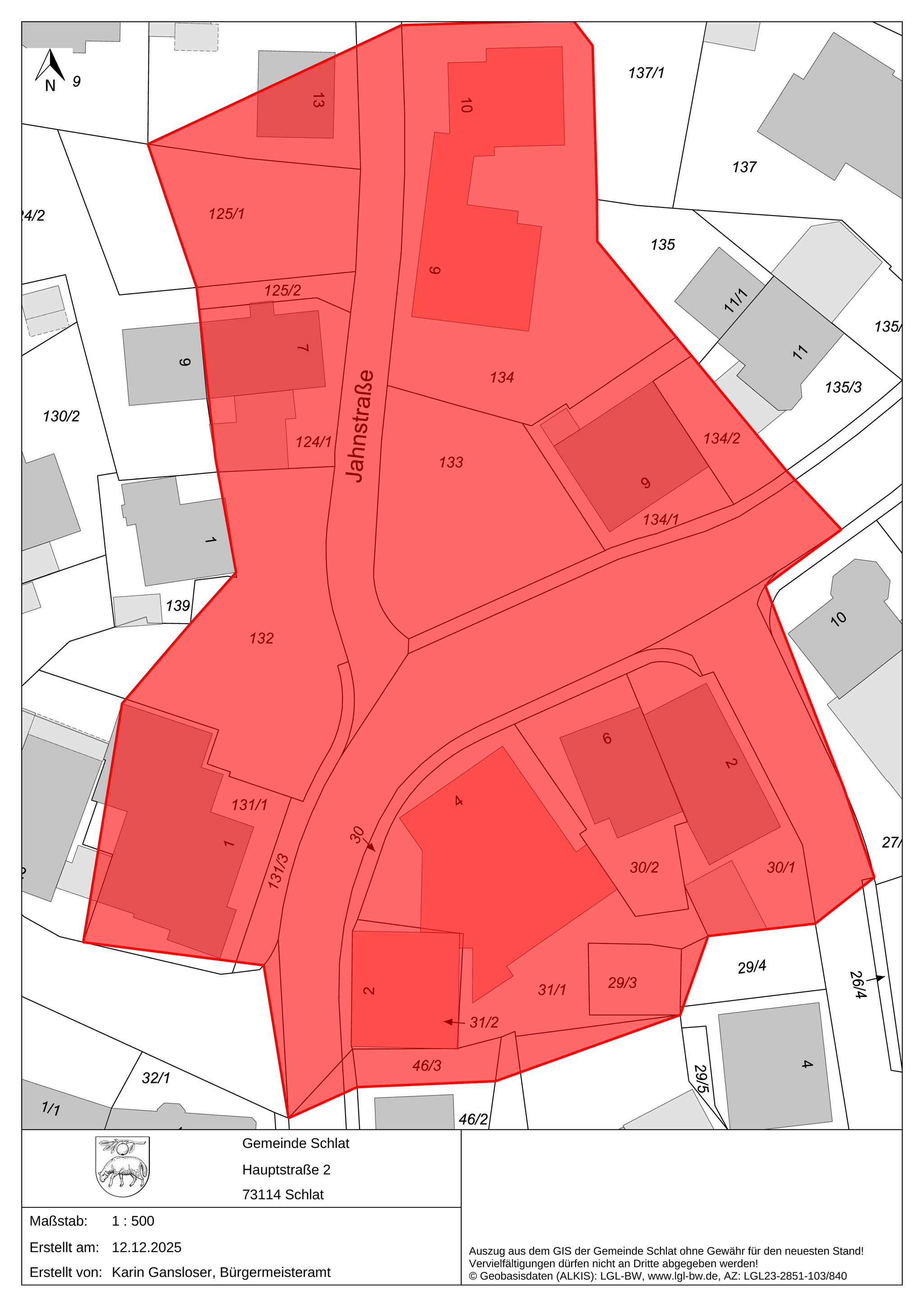 Böllerverbot anlässlich einer Veranstaltung am 31.12.2025 und 01.01.2026 in der Schlater Ortsmitte. Der Geltungsbezirk bezieht sich auf den in der Anlage beigefügten Geltungsbereich.
